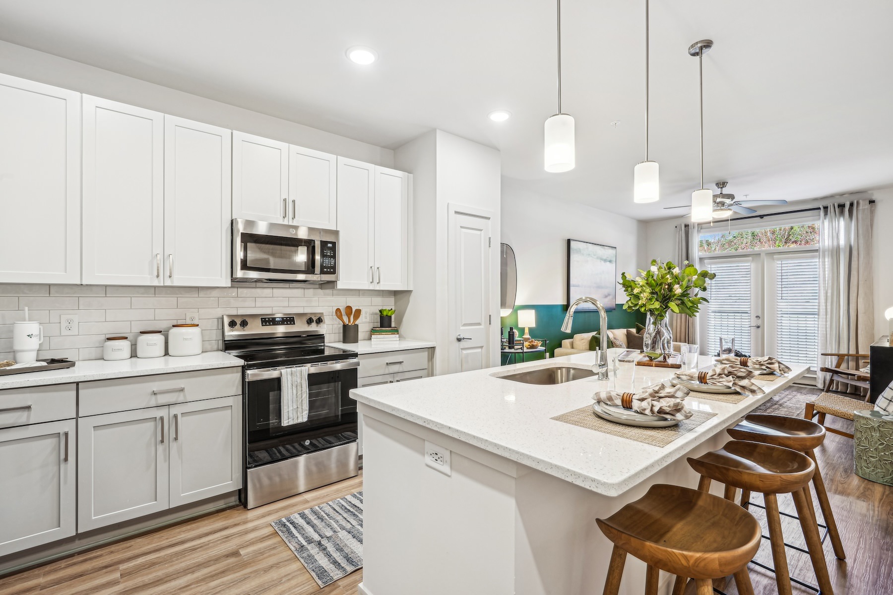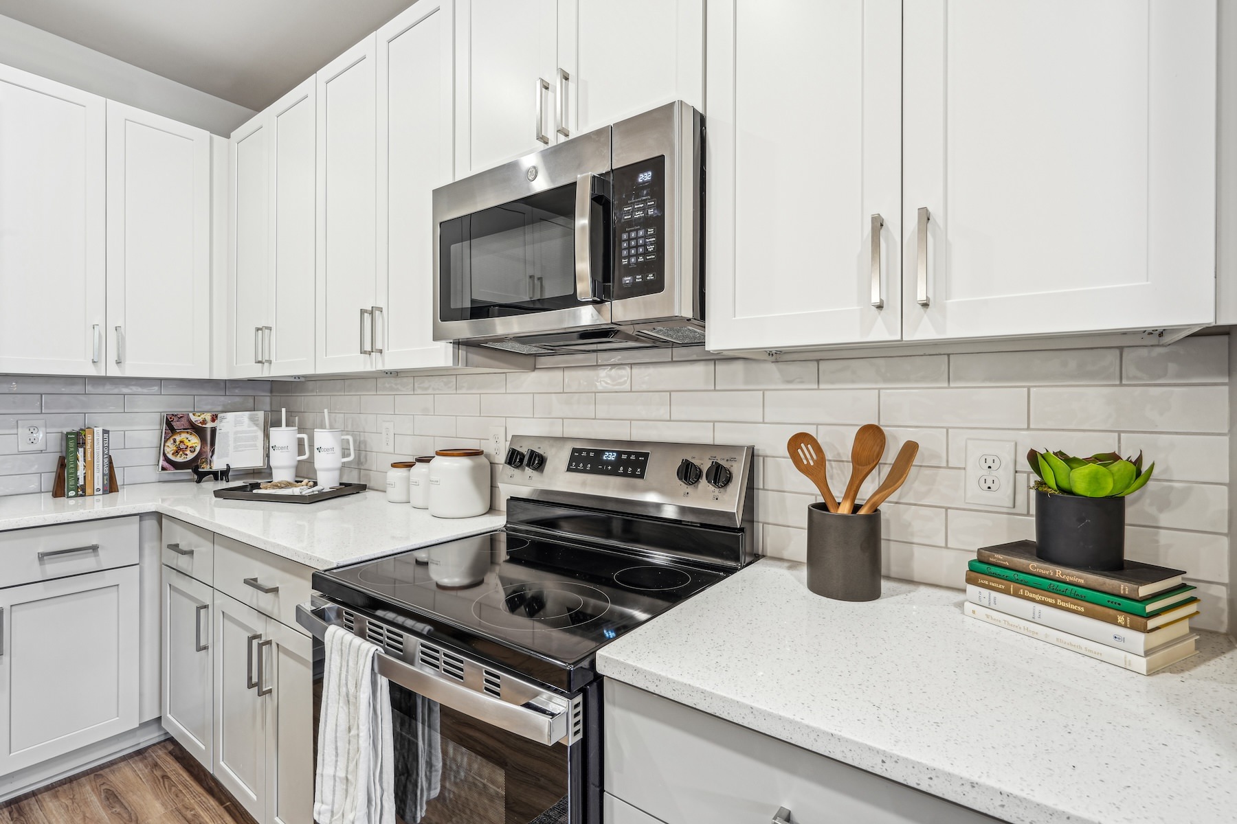 Browse our gallery below to see the elegant interiors, modern finishes, and intricate details for yourself. From stainless-steel appliance to quartz countertops and wood-style flooring, our apartments provide the perfect blend of luxury and comfort.